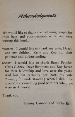 Tommy: I would like to thank my wife, Hazel, and my children, Kelly and Zoe, for their patience and understanding.