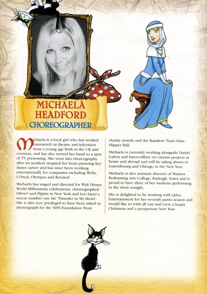 Michaela is also assistant director of Masters Performing Arts College, Rayleigh, Essex and is proud to have three of her students performing in the show tonight.