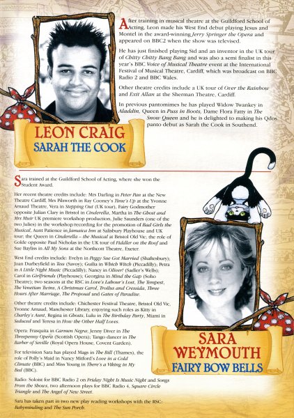 In previous pantomimes he has played Widow Twankey in Aladdin, Queen in Puss in Boots, Dame Flora Fatty in The Snow Queen and he is delighted to making his Qdos panto debut as Sarah the Cook in Southend.