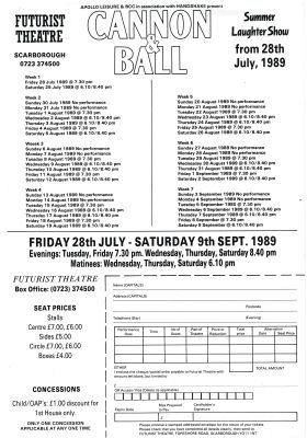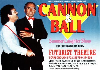 1987 was just as busy as ever for Cannon & Ball. Following the finish of their pantomime in Bradford at the end of February, Tommy and Bobby took a well-earned holiday and then straight into a spring tour from mid-April until the end of June Their summer season at Blackpool Opera house commenced mid-July until the end of October – another marathon record-breaking fourteen week season.