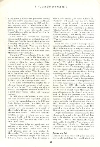They made the change for their TV debut in Opportunity Knocks!, which they still recall with shudders. ‘It was a real disaster,’ says Cannon. ‘We were full of confidence and imagined that stardom was just around the corner. However, our impact was such that we failed to budge the clapometer. We were Opportunity Flops.’ This may be understood by resurrecting one of their jokes on the show: